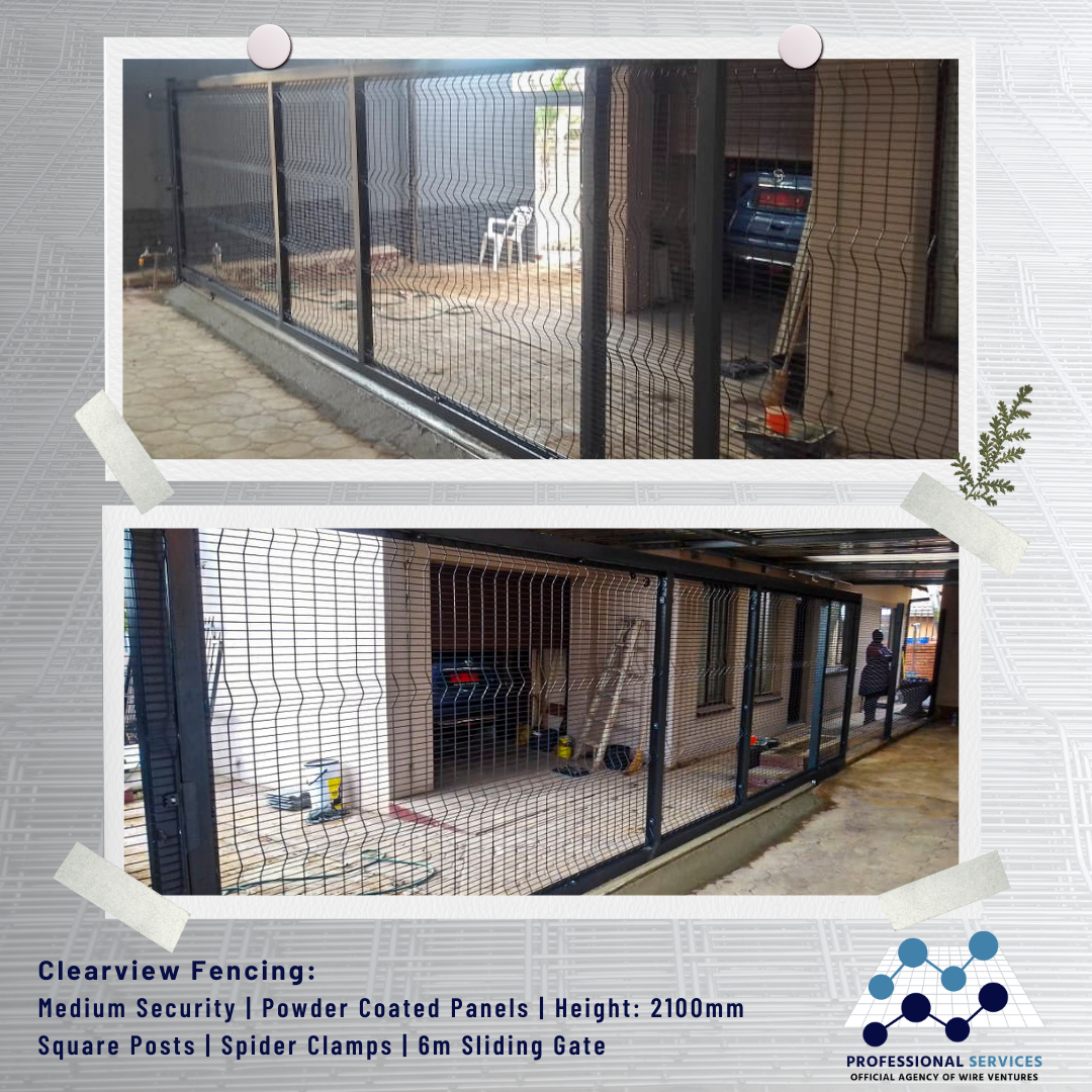 🚧 Challenge accepted! Our installation in Mamelodi had us working under a carport to split a property for better control—talk about squeezing into tight spaces! 😅 With Clearview panels (76mm x 25mm, 2100mm high) and a 6m wide gate, we created a sleek, secure solution.